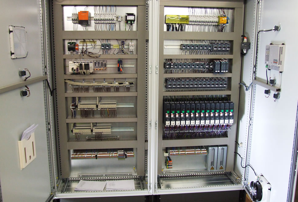 Réalisation d’armoires industrielles pour un fabricant de convoyeurs.